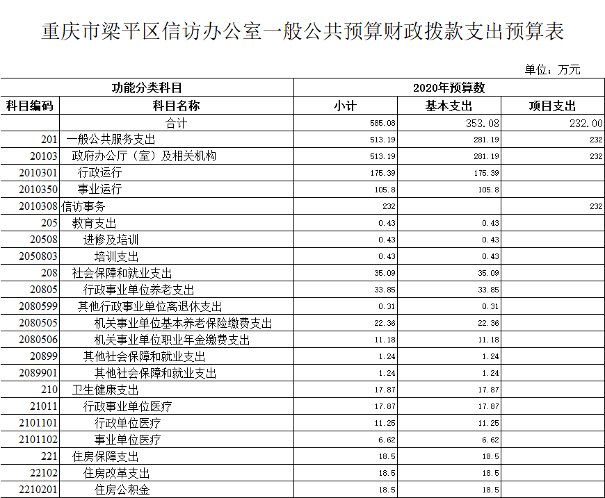 | 標題 | 重慶市梁平區信訪辦公室2020年部門預算情況說明 |