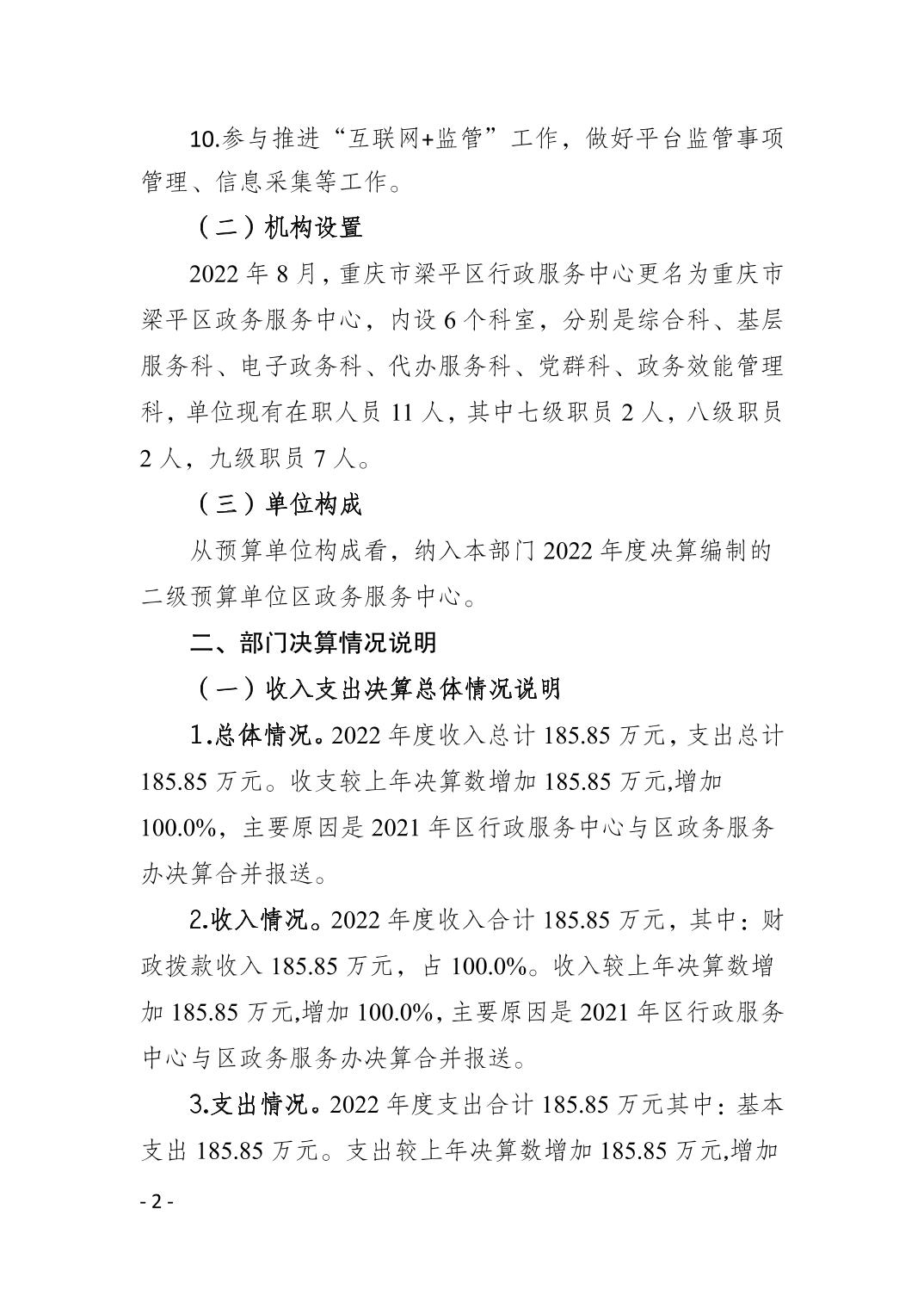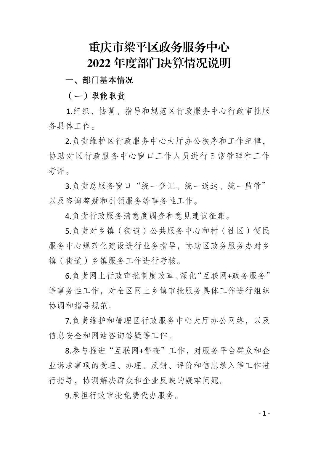 | 標題 | 重慶市梁平區政務服務中心2022年度部門決算情況說明 |