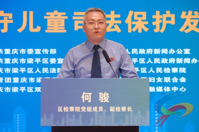 【何駿】:尊敬的各位領(lǐng)導(dǎo)、代表委員,親愛的市民朋友們,大家好!我是重慶市梁平區(qū)人民檢察院黨組成員、副檢察長(zhǎng)何駿,重慶市梁平區(qū)人民檢察院從事未成年人檢察工作的檢察官們通過高質(zhì)效辦案、多元化宣傳、綜合司法保護(hù)三大舉措,像法治園丁般呵護(hù)幼童們成長(zhǎng)成才,形成具有梁平地域特色的未成年人保護(hù)品牌“莎姐·檢護(hù)‘柚’苗”。今天我發(fā)言的主題是:檢護(hù)“柚”苗,守望未來。